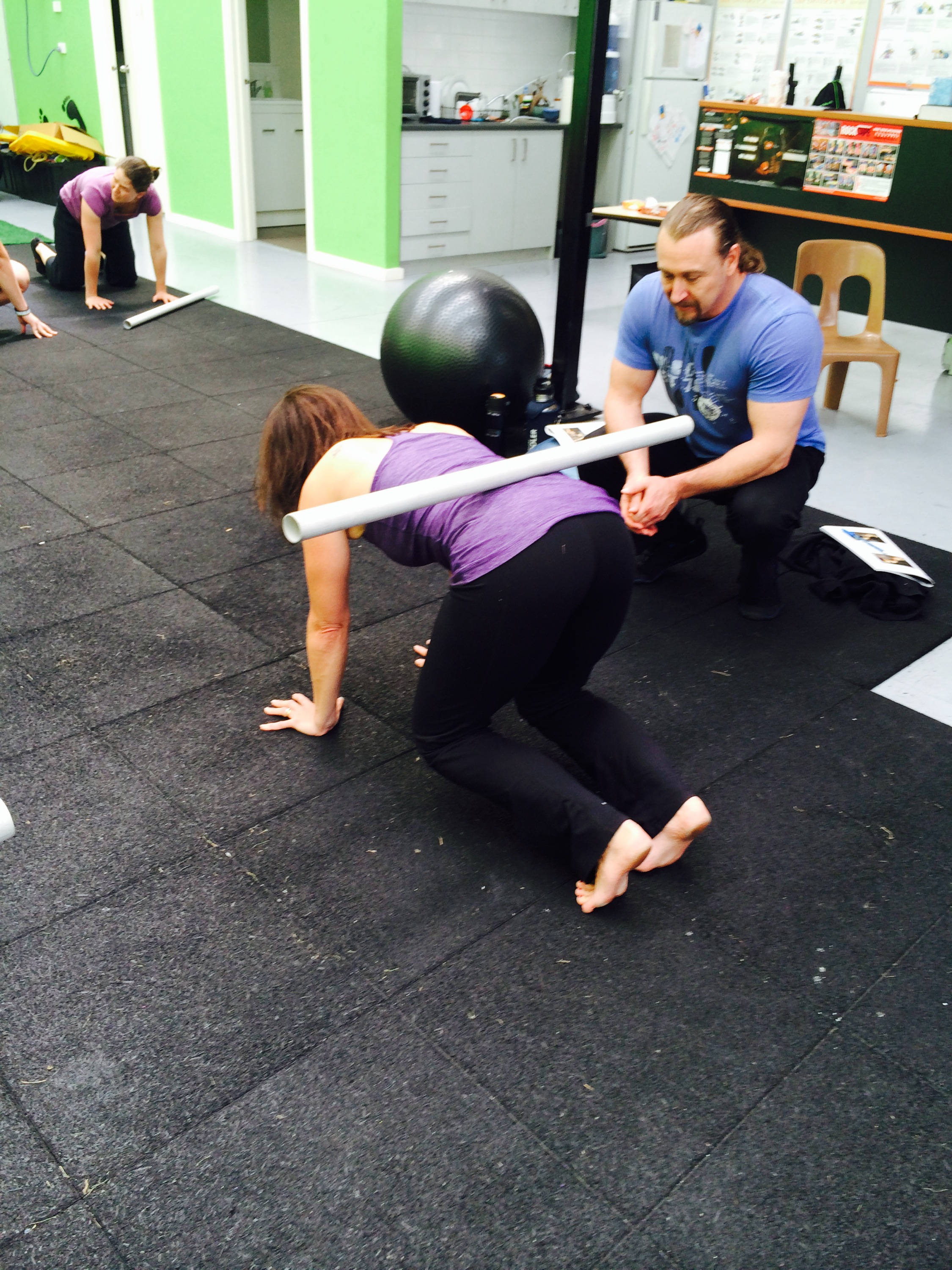 We watched Vesna, a seminar attendee and body worker, struggle with the idea of the hanging leg raise.